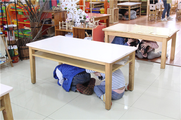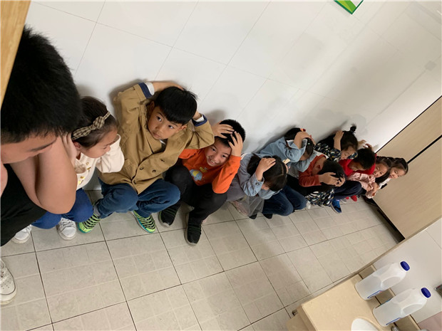 5月15日,两声警鸣声拉响了三井中心幼儿园的防震减灾专题活动。在课程推进层面,每班级教师有意识地通过安全教育平台来推进安全教育课程,让孩子在看视频、提问题、演示避震姿势中了解地震常识、地震避险常识、自救互救常识、地震次生灾害常识、应急疏散注意事项等。紧接着全园进行实操演练,第一次警鸣声,全体幼儿立即就近躲避,有的幼儿躲避在桌子下面,有的幼儿护住头部躲在墙角,还有的幼儿低头躲在厕所墙边,等到主震结束后,为了防止有较大的余震发生,听第二次警鸣声,快速进行有秩序的疏散,全园通过5分钟时间顺利完成防震减灾演练,回到班级老师更是通过谈话讨论、总结经验、日志表征等方式帮助幼儿梳理巩固。