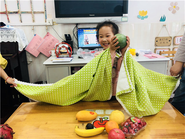 小班幼儿在日常生活中经常出现挑食、偏食、不爱吃水果的现象,怎么办呢?为了促进幼儿更多地了解蔬果中所蕴含的营养价值,在家长的合作助推下,孩子们以蔬果为主题,开展了各种有趣的游戏。利用不同蔬菜水果的横切面进行拓印,一幅幅有创意的作品呈现在众人面前;利用仿真的蔬果,结合《指南》中关于健康领域的指导要点,进行了有趣的《蔬果藏在哪里》的体育游戏;与父母合作,利用身边的废旧材料制作蔬果服装,在有节奏的音乐中展现自己最喜爱的蔬果模样……每一次游戏孩子们都乐此不疲,每一次游戏后孩子们都对蔬果有了更多的认知。