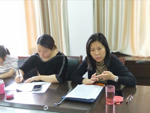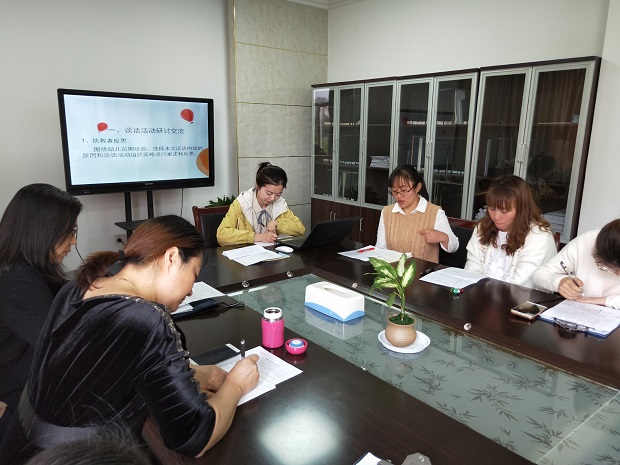 紧接着,曹莲老师围绕“开展活动的原因”、“前期的准备”、“本次活动目的”和“活动过程中的优与缺”进行了阐述和反思。老师们从教师提问、回应等方面对本次活动的设计和组织进行了现场互动、交流。