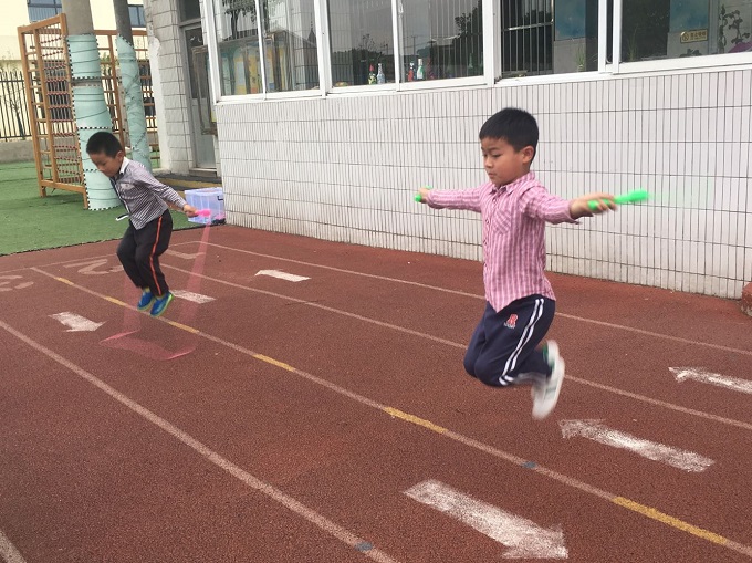 拍球项目参赛的小运动员们都展示了自己最好的实力,发挥了最佳的状态。接下来开展的是单人跳绳比赛,孩子们在1分钟之内比谁跳的最多。小运动员六人一组进行PK。比赛的孩子们个个信心十足,实力不凡,只见绳子在运动员的脚底下”嗖嗖“的穿过。旁边拉拉队员的声音也不弱,加油声此起彼伏。