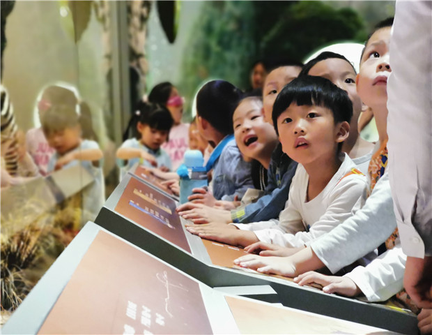 到达博物馆,为避免拥挤,幼儿分成两组进行参观。一组幼儿先到二楼了解常州历史发展演变,另外一组幼儿先到三楼参观儿童博物馆。在参观的过程中,孩子们都睁大了好奇的眼睛看着各种各样的展品,在听着讲解员讲述介绍时,还参与了自己的想法。在博物馆二楼孩子们仿佛走进了时光隧道,他们从史前时期开始了历史的穿越之旅,最后回到了现代文明;在三楼他们看到了各种昆虫、植物、动物标本模型、化石,他们按动开关,被屏幕中声、光、电科技演示深深吸引,他们置身于实景园林、森林奇观中拍手欢呼、蹦跳。他们主动向讲解员请教东北虎、大熊、狮子、鸵鸟等胎生动物和卵生动物的知识……整个参观活动有序而紧凑。最后,孩子们还得到了贝壳小乌龟、视力表等礼物,他们坐上大巴车满载而归。