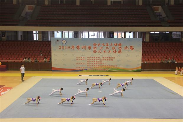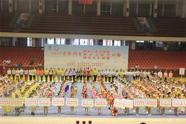 2019年常州市幼少儿基本体操比赛、常州市幼少儿技巧比赛及常州市幼儿艺术体操比赛于5月17日在常州市中天钢铁体育馆如期举行。本次比赛由来自常州市46所幼儿园和小学的体操健儿们组队参加。本次比赛西幼小朋友共参加了大班甲组“自编操”、乙组“球带操”“圈操”及中班“幼儿基本规定套”四个比赛项目。