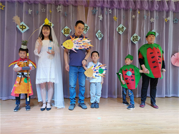 中班以“环保”为主题开展了亲子时装秀活动,每套服装都是家长和孩子一起利用各种废旧材料制成的,有树叶做的上衣、塑料袋做的裙子、报纸做的小西装、纸箱做的恐龙……每一件作品都构思巧妙、别具匠心随着动感音乐,唯美的观音、漂亮的花仙子、酷帅的蝙蝠侠、可爱的霸王龙等等一一上台摆出最帅的造型一展自信与快乐,他们精彩表演给大家带来了一场令人难忘的视觉盛宴。