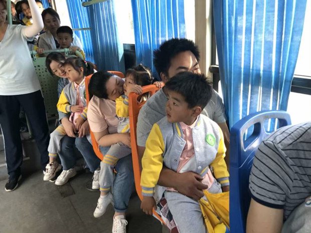 大手牵小手我们排着整齐的队伍坐着公交车驶向民俗公园。家长和孩子们首先从公交车前门刷卡、投币,紧接着找到合适的座位坐下,孩子们安静坐在公交车上享受着愉快的旅行。瞧!这时候车子到站点停了,一位年龄比较大的老爷爷上来了,这时一个小女孩说:“妈妈,我们要给这个爷爷让座。”正是这一个小小的举动温暖了老爷爷的笑脸,老爷爷开心的笑着说:“谢谢你,小朋友。”孩子在真实的环境中认识、体验、并成长。