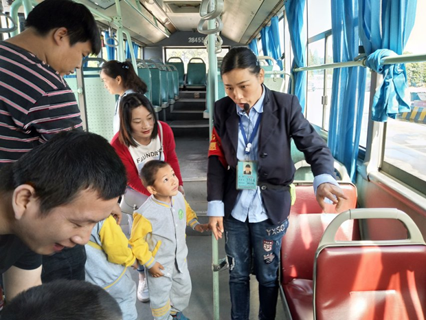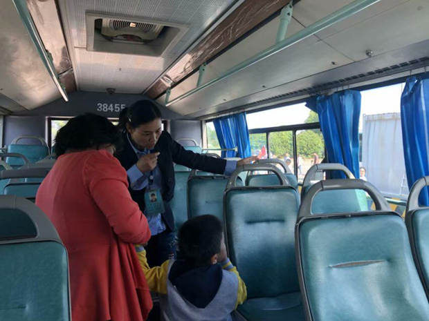 司机阿姨带领着孩子们进行实践的体验,做了一回小乘客。孩子们首先一个个排好队有序的上车参观,首先进入公交车内映入眼帘是投币箱和刷卡机,紧接着司机阿姨讲解车内的爱心专座的作用,并详细的讲解了在公交车车内的环境设施,体验了出行的有序和秩序生活的美好,并在司机阿姨的讲解下详细的了解前门上车后门下车,上车要坐稳扶好,不相互打闹,大声喧哗等乘车规定。随后司机阿姨给大家介绍各种安全装置“逃生锤”“逃生应急开关”“紧急逃生出口”“灭火器”等,以及如何使用这些设备和装置。下车后老师又和孩子们认识车的轮胎、车牌号、公交车号,教师还给孩子们介绍每辆公交车出行之前都要进行清洁打扫以及检修工作,为的是让每一位乘客都能够安心、舒心乘坐公交车。