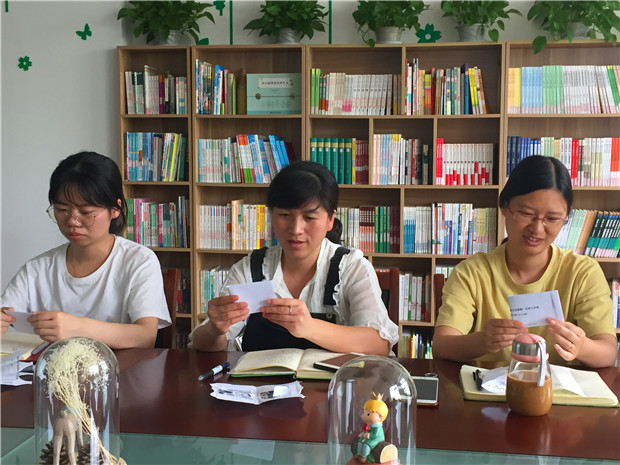 首先,主持人带领大家通过热身游戏——撕纸游戏,引出“沟通”的定义,并阐述沟通的目的和有效沟通的意义,让老师们感受沟通的重要性。紧接着,根据三个小案例,老师们写一写自己的想法,通过传阅的形式看一看其他人的金点子,并用自己喜欢的形式为他人点赞,最后再说一说你欣赏的智慧锦囊。在“写写”、“看看”、“说说”的过程中,大家学会了如何与家长对话、如何换位思考、如何用艺术的语言与家长沟通,解决问题。紧接着,张主任分享几则关于沟通的小策略:“描述你所看到的”、“用简单的词语表达”、“说出你的感受”……将如何利用艺术的语言构建园家“联盟”的教育关系等问题娓娓道来,用“授人以鱼,不如授人以渔”的理念指导老师们和家庭形成教育合力,更好的促进孩子的成长。