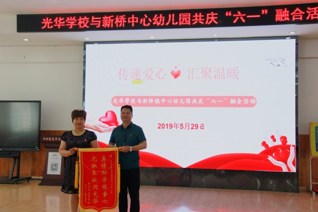 2019年5月29日,常州市新桥镇中心幼儿园党支部党员代表、幼儿园行政、家委会代表、幼儿代表、关工委代表一行人走进常州市光华学校,提前为他们带去六一的温暖与祝福。