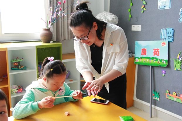 接下来新桥镇中心幼儿园的党员、老师和孩子们一起结对,亲切地交流,理解、鼓励、欣赏他们,和他们一起进行手工制作,用爱心呵护他们,这些“折翼”小天使们脸上洋溢着快乐的笑容。