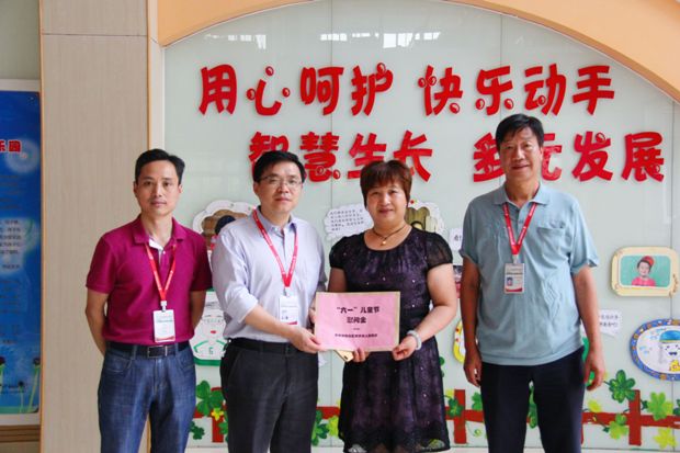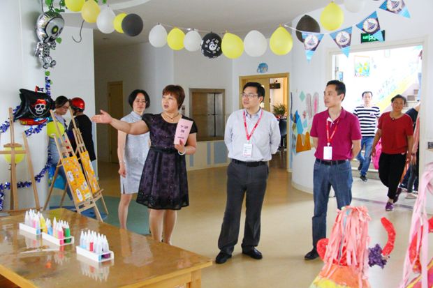 六一儿童节即将来临,2019年5月31日下午新桥镇陈弢镇长、高志奇副镇长与文教助理蒋明皋等领导前往新桥镇中心幼儿园进行“六一”节日慰问。幼儿园万红亚园长接待并陪同领导们参观了幼儿园环境,介绍了幼儿园文化、特色、课程以及上午开展的“庆六一”游园活动。领导们感受到了园内各班浓厚的“庆六一”游戏氛围,不禁感叹:让家长参与活动的举措非常好,活动效果也不一样。相信全园幼儿将会在领导的关爱下,在老师、家长们的呵护下快乐成长!