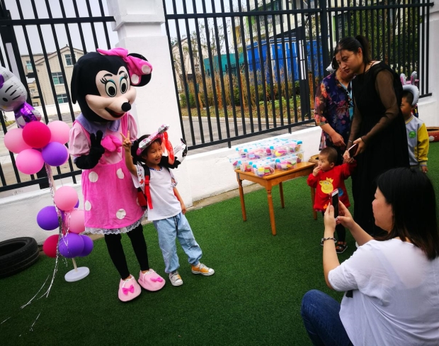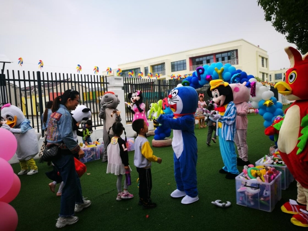 2019年5月31日上午8;00,在欢快的音乐中,幼儿园迎来了一群可爱的孩子们,首先映入孩子眼帘的是9名可爱的人偶娃娃,她们给每位入园的孩子们派发了小礼物戴在了头上,穿过“六一”气球拱门,王玉霞园长妈妈热情地接待孩子,给他们送上六一礼物及祝福,孩子们开心地回应道:“谢谢园长妈妈!”同时,其他孩子也收到了行政团队派发的礼物与祝福,每个孩子的脸上洋溢着笑容,并和人偶娃娃一起拍照留念。