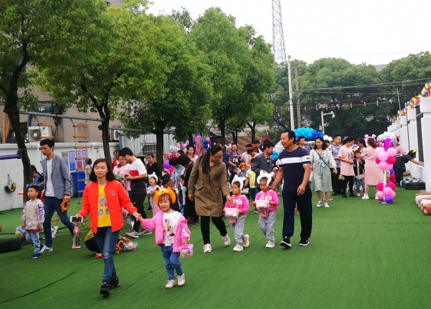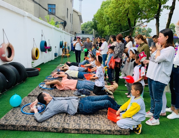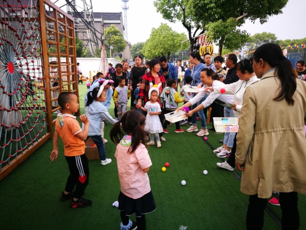 期待已久的亲子游园活动正式开始啦!看,孩子们在家长的陪同下,忙碌着在各个游戏中穿梭着,家长们参与的积极性也很高,有的家长戴上眼罩,在孩子的搀扶下走过障碍,有的家长使劲往前往孩子身上贴爱心,有的家长伸长了手臂接孩子扔过来的球……,参与游戏的孩子们都拿到了游戏奖品,个个乐开了花!
