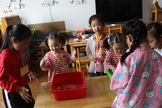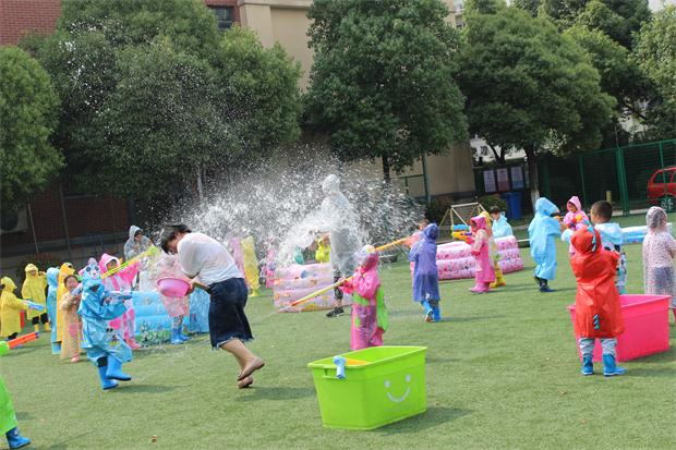上午7:30点,伴着花儿的芳香,踏着欢乐的节拍,滨江豪园幼儿园的孩子们开始了寻找神秘的“六一”礼物之旅,“哇,找到了找到了”、“哈哈,太棒了” ……教室里、区域里、床铺下、户外草丛里,一声声惊喜、一片片欢笑!孩子们按捺不住内心的兴奋,迫不及待地在温馨幸福的气氛中把玩着找到的礼物。每个人脸上都洋溢着幸福的笑容,浓浓的爱在幼儿园弥漫开来…上午08:30,孩子们和自己的同伴伴手持通行证,按照自己的游戏计划表自主选择游戏场地,开始了快乐的“水之旅”。他们穿梭于各班的区域游戏里:弹珠夹夹乐 、水中投币、水宝宝搬家、水剧场……孩子们在自主游园活动的同时感受着游戏快乐的气氛,同时分享着夏日清凉的果汁饮料带来的欢乐和喜悦!体验着自主选择、自主游戏、自己做小主人的快乐。下午2:30,“撒欢嬉水,爱在六一”将六一活动推向了高潮,瞧!孩子玩味十足,他们带来了水枪和雨衣,和小伙伴玩起了打水仗,户外草坪顿时成了孩子们欢乐嬉戏的海洋。衣服湿了不要紧,细心的老师给孩子们换上干净的衣服;为防止感冒,厨房的阿姨还给孩子们精心准备了姜茶。