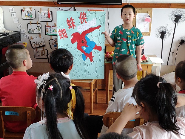 对于大班幼儿而言,这是他们在幼儿园过的最后一个儿童节,看!“宝贝,妈妈怀里安睡”柔美的舞姿,是孩子们对甜蜜成长的回味以及幼儿园的不舍;“让我们荡起双桨,小船儿推开波浪”悠扬的小提琴声,是孩子们对小学美好生活的向往;“我们天天向上散发着光,天天向上乘风破浪”激昂的歌声中,是孩子们对同伴的美好祝愿。结合《再见吧,幼儿园》主题课程,大班组教师把“六一”的主动权还给孩子,自备主持稿、自选节目,尽情表达内心的感受。在混班观影活动中孩子们自选电影、自创环境,大胆地向其他班幼儿宣传本班电影,吸引更多观影者。这个“六一”,是孩子们的“六一”。