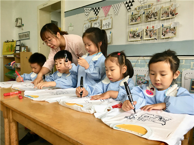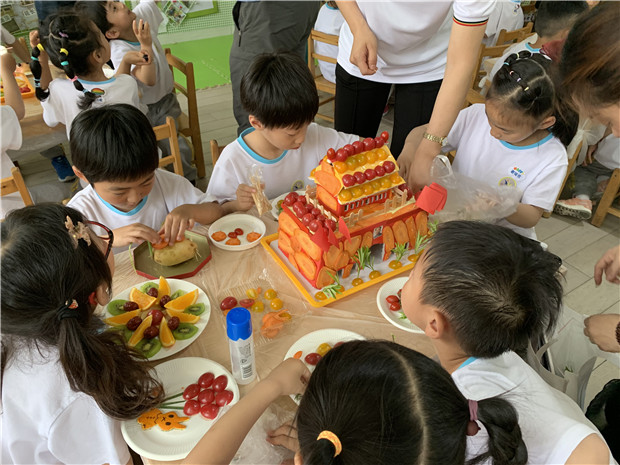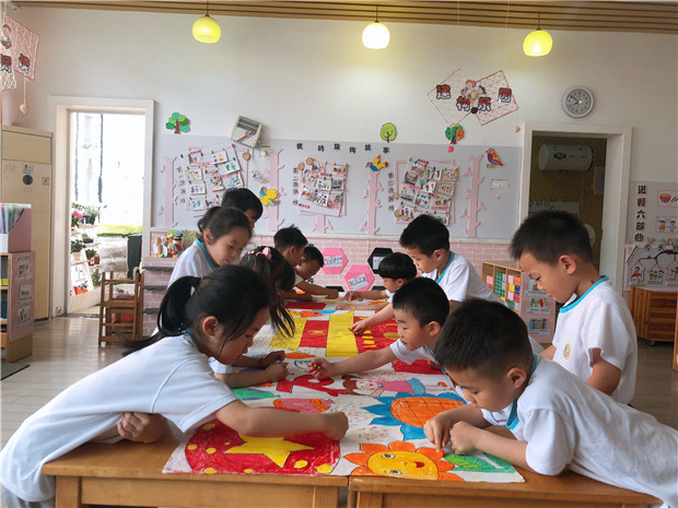 在奥园中班部的教室里,有的孩子拿起手中的画笔,描绘着祖国、家乡的美景;有的孩子制作了一张张贺卡,祝福祖国妈妈的生日;有的孩子在白T恤上绘出了天安门、国旗,将对在祖国的爱装在心里;有的全家总动员制作了象征祖国繁荣昌盛的水果拼盘和生日蛋糕……小小萌娃们用自己的方式把最美的祝福献给祖国妈妈。