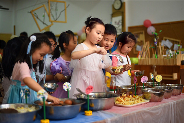 “六一”自助餐是井幼每年“六一”活动的传统项目,也是孩子们最为期待的美食盛宴。看着眼前热气腾腾、浓香扑鼻的美食,每个孩子的眼睛里都闪烁着惊喜与幸福的光芒。“哇,好香啊!”“哇,这么多好吃的!”“你看!有我最喜欢吃的鸡翅和鸡块耶!”……孩子们在美食面前宛然成了“小馋猫”,个个垂涎欲滴、跃跃欲试,马上自主有序地挑选起自己喜爱的食物,让人看了忍俊不禁!