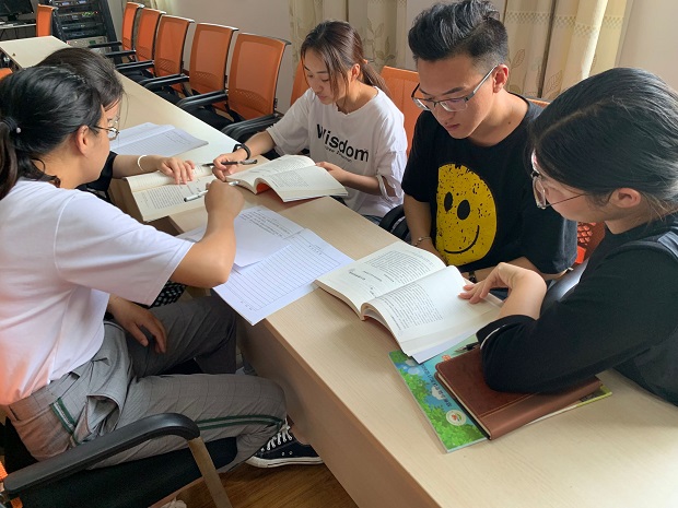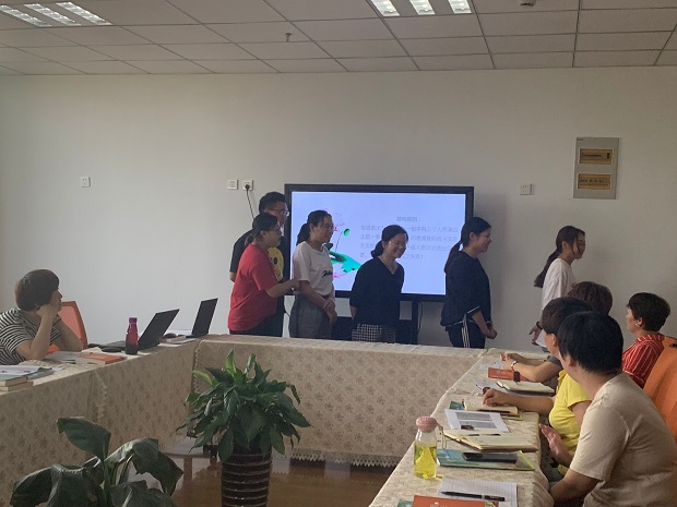 接着全体教师分成四组对《物质材料与幼儿园课程》内容进行前学习,并由每组代表来分享文章中的关键词及自己对所学内容的理解。