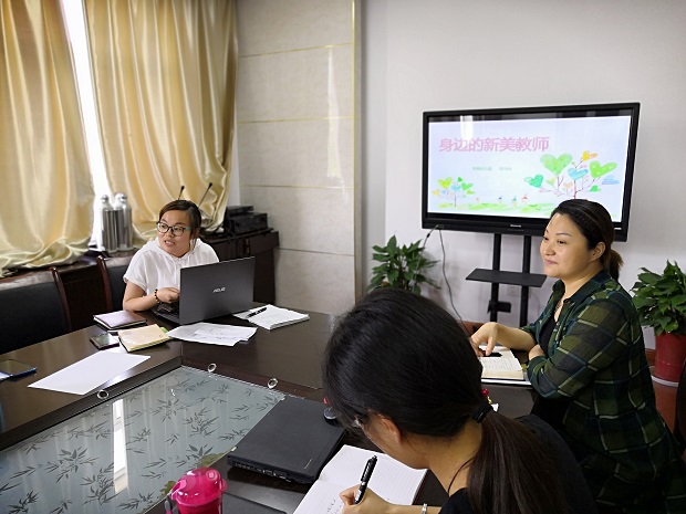 活动前,老师们早就将心中的新美教师写入了演讲稿。活动中,老师们用朴素的语言和动人的感情,诠释了老师们的新美事迹。