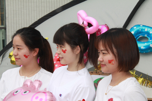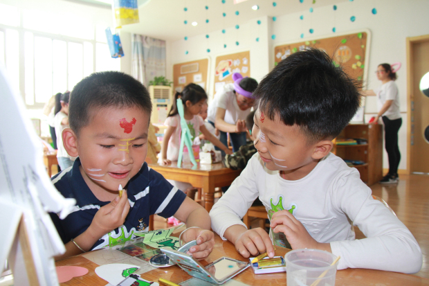 活动当天,各园区楼层有以五星红旗、龙舟、粽子、场馆二维码等元素组成的楼层导览图,既是孩子们的“小导航”、家长们的“沟通桥”,又是隐形的“教育墙”。每位老师和志愿者进行了国旗、粽子的面部彩绘,共同向祖国70周年华诞致敬。
