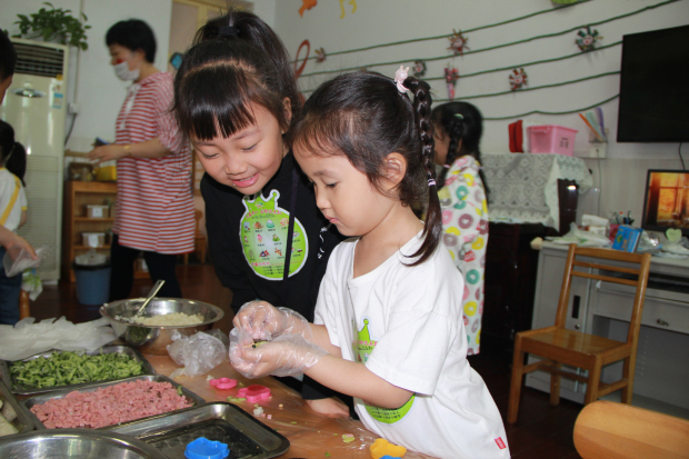 一楼缤纷美食趴可谓是孩子们的天堂,小朋友们在品尝中华不同地域美食的同时,感受“舌尖上的中国”无穷的魅力。“一见粽情馆”里孩子们尝试着动手动脑包粽子,甜粽、咸粽、长粽、枕头粽、三角粽……不同的地域不同的方法,彰显中华文化的博大精深;“趣拌凉食馆”内孩子们自选材料、调拌出清凉爽滑的陕西凉面,刷新了孩子们对中华传统美食的认知;“甜蜜串串馆”中孩子们摇身一变,自己动手成为“北京糖葫芦”的代言人,酸酸甜甜的冰糖葫芦京味儿十足……