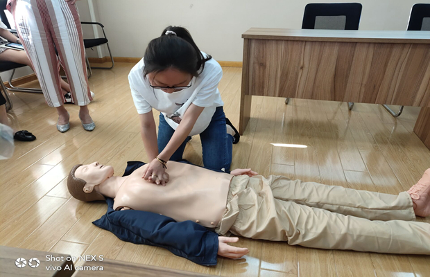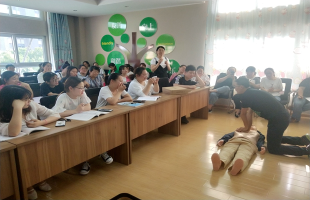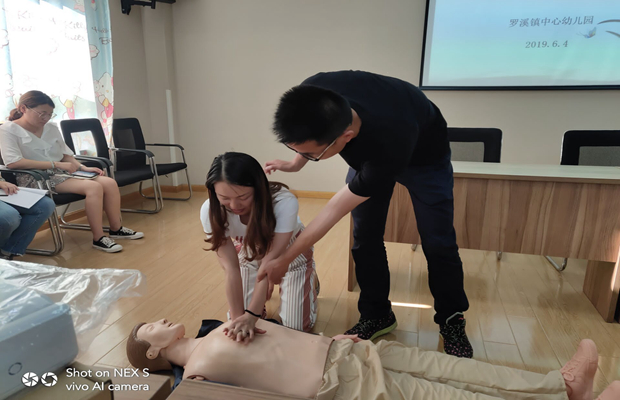 6月3日下午,罗幼利用园部集体政治学习的时间,由吴老师为罗幼全体教职工进行了现场培训。 重点强调了进行心肺复苏的重要前提,以及心肺复苏时的操作注意事项。同时邀请了罗幼的荆海芬副园长和保育员李蕾老师,进行实际操作,深入了解操作要点,现场感受应急救护。