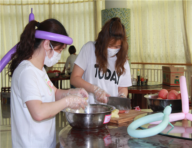 在本次活动中,欢乐美食趴是为喜迎祖国70华诞而特别创设的游戏主题馆。幼儿食品安全重于泰山,美食当道,卫生安全同样不可忽视,为了保证欢乐美食趴中食材的新鲜与品质,园区食堂负责人统一汇总了各场馆所需的食材名称、数量,及时联系学校定点的各大供货商如瑞和泰、红梅牛奶等进行重点配送,并前往麦德龙大型超市采购零星食材。活动当天,所有后勤人员、家长志愿者早早来到幼儿园,洗、切、装盘,默契配合,做好一切准备工作。大家在准备过程中都带着卫生手套和口罩,确保进入孩子口中的美食都干净卫生,并都经过食堂负责人细心查看后再投放到活动中。