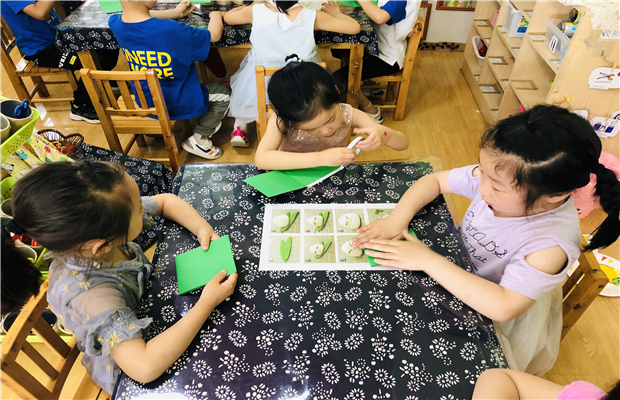在各班的区域中,孩子们也玩起了有关端午的游戏。建构区他们用积木拼搭了龙舟;生活区包了粽子;美工区还剪贴画了可爱的粽子……可真是厉害呢!