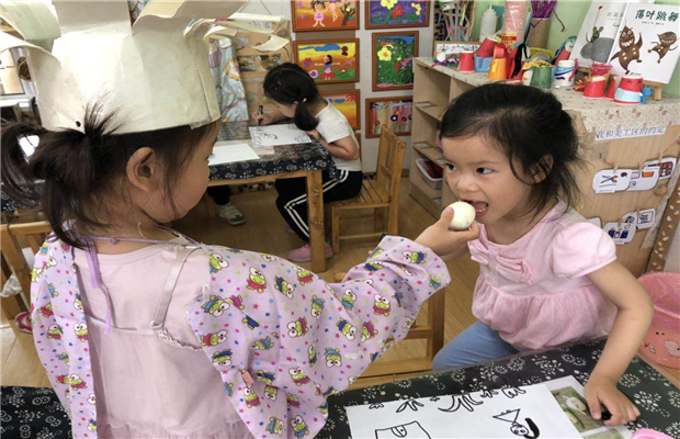 在爸爸妈妈的指导下,孩子们第一次尝试了包粽子。他们还品尝了自己动手做的粽子和爸爸妈妈带来的咸鸭蛋,味道真不错!