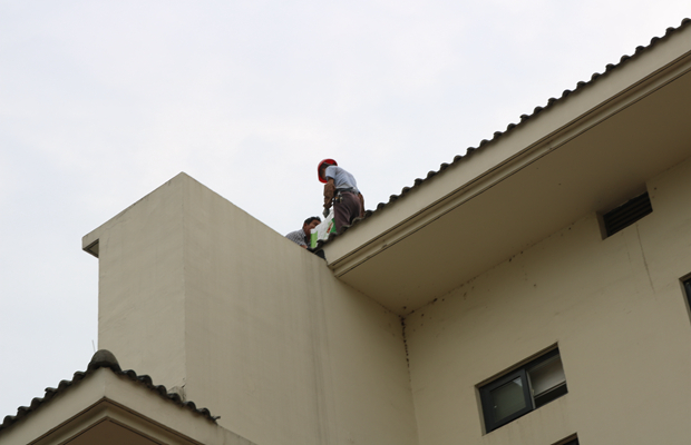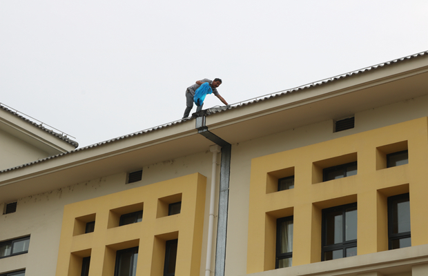 安全组成员对幼儿园房屋设施、围墙、周边环境等进行了严格检查,并请专业人员对幼儿园屋顶的天沟、排水管道里的垃圾进行了清理,确保排水通畅,保证汛期园舍安全。