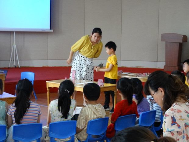 幼儿园之间的相互交流是一个知识共享,经验共享的重要平台。今天上午,孟河中心幼儿园开展了八园联动的教研活动。此次活动的目的是加强园际间的交流,彼此学习,共同提高。本次活动主要以观摩交流为主。先是由我园王贞老师和小河中心幼儿园的董钰老师分别执教两节大班的科学活动《神奇的纸》和《纸牌垒高》,然后所有老师观摩中大班的区域活动,再集中进行评课。在研讨过程中,听课老师毫无保留,为教师们提出了一些不足和建议。最后由徐英园长进行专家引领,大家在碰撞中寻求平衡,在对话中产生共鸣,在争论中不断前进!