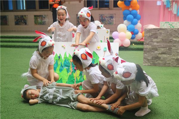 毕业文艺展演:6月4日和6日两天,大班十个班级采用班与班自主结伴的形式,展演各班师幼共同编排的文艺节目。展演中除了展演文艺节目,还向家长们讲述我们融毕业活动进课程的教育理念;由孩子们向爸爸妈妈介绍自己在活动中的计划、设计、操作、分享交流,得到了家长的一致赞同与支持。