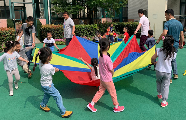 一位好爸爸,胜过一百位好老师,有个运动型老爸简直太棒了!看,操场上一群爸爸们正在带领着孩子们一起做运动呢,和爸爸们玩游戏好开心啊!