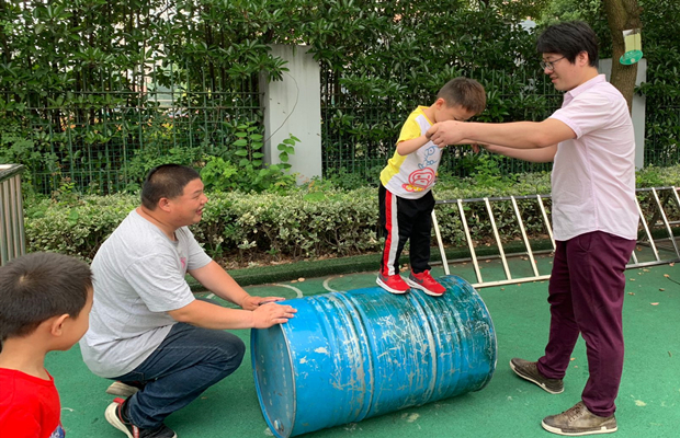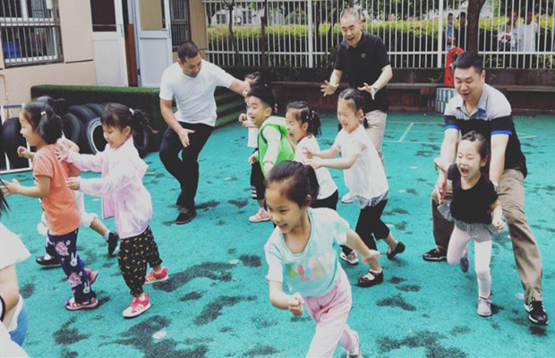 一位好爸爸,胜过一百位好老师,有个运动型老爸简直太棒了!看,操场上一群爸爸们正在带领着孩子们一起做运动呢,和爸爸们玩游戏好开心啊!