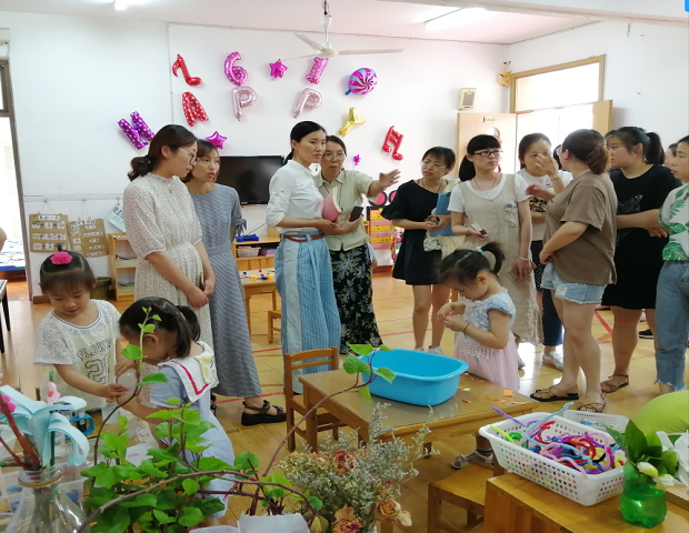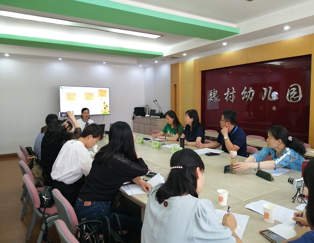11日下午,江苏省教科院幼特教所张晖所长再次来到魏幼现场指导。此次活动从“听,花开的声音——小班级组《花博会》”课程汇报开始,教研分享后,张所又进入班级了解幼儿游戏情况。随后对接《指南》《纲要》,张所引领大家围绕课程实施中如何加强对个体的关注和支持进行阐述,用视频照片的效果展示让大家明白材料支持对幼儿发展的重要性。她指出:幼儿是在生活和游戏中发展的,每个孩子的认知水平决定了课程的内容不同,只有围绕孩子们的兴趣点提供充分有效的环境材料,才能让孩子们在与之自然互动中产生学习,获得发展。而四季不同的资源、材料最后就形成各不相同的园本课程。