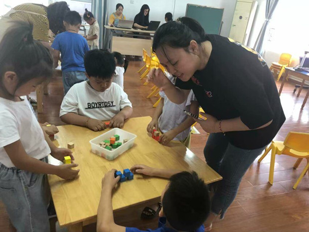 第三节大班数学活动《数积木》由金晶老师、陈洁老师和冯美玲老师三位老师执教,主要是让幼儿在数正方体的过程中能够更好的从空间建构到平面图形的转换,幼儿通过观察、推理来感知立体图形在空间的存在形式,体验数形关系。