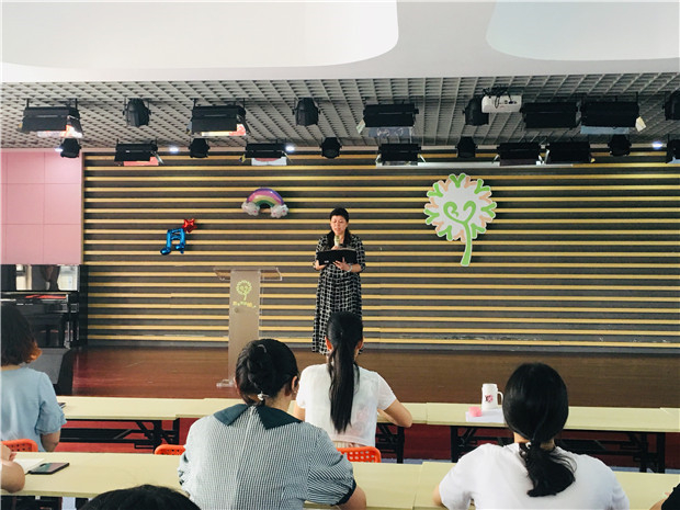 2019年6月28日上午8:00,奔牛实验幼儿园金牛分园学期末工作总结交流大会在三楼综合大厅召开。执行园长林文玉,副园长周丽芬及全体教师出席了会议。