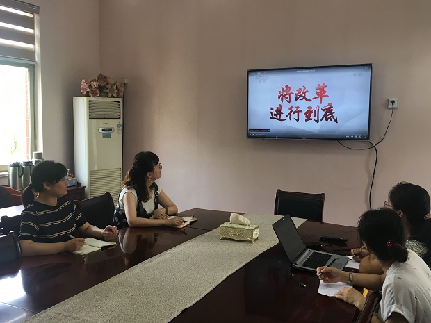 在会议上,殷藜芬同志带领全体党员同志观看了“将改革进行到底”的宣传纪录片。同时,殷园长强调:重视学习,善于学习,是中国共产党人战胜艰难的法宝,也是习近平总书记长期身体力行、大力提倡、反复阐述的一个重大问题。全体党员要以此为契机,在武装头脑、指导实践、推动工作上见成效,不断开创百丈中心幼儿园党建工作新局面。
