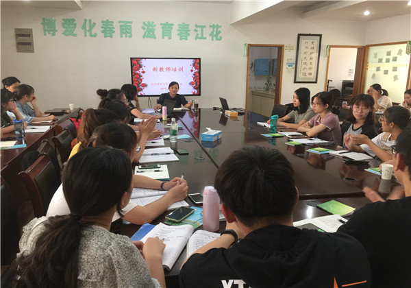新学期,新起点,春江大家庭迎来了9名新教师的加入,他们青春昂扬、他们快乐阳光。为了让新教师熟悉幼儿园教育教学工作,并能快速适应幼教岗位,2019年8月20日下午,在春江幼儿园南苑会议室举行了新教师岗前培训。