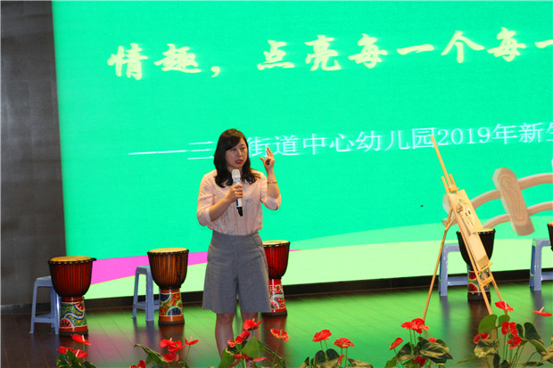 在园所介绍篇,徐英园长从幼儿园的发展说起,如数家珍地向大家介绍了井幼的师资情况、办园理念、园所文化以及办园特色等,并且重点介绍了我园的情趣阅读。在徐园长的隆重介绍下,小班组的全体教师们带着真诚的微笑和祝福集体登台亮相,以积极、阳光的姿态展示了井幼优秀的教师团队。