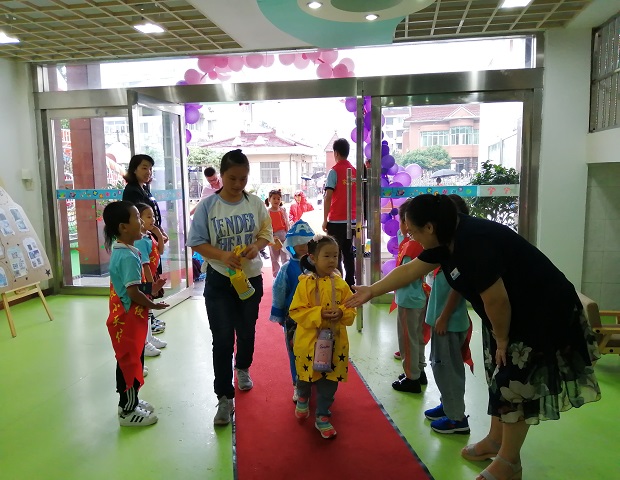 踩着水花,孩子踏着欢快的脚步走入魏幼,保健老师细心为他们晨检,小伙伴们快乐呼唤,老师微笑相迎……彼此见面都是问好声,雨中重逢,是快乐的开始。