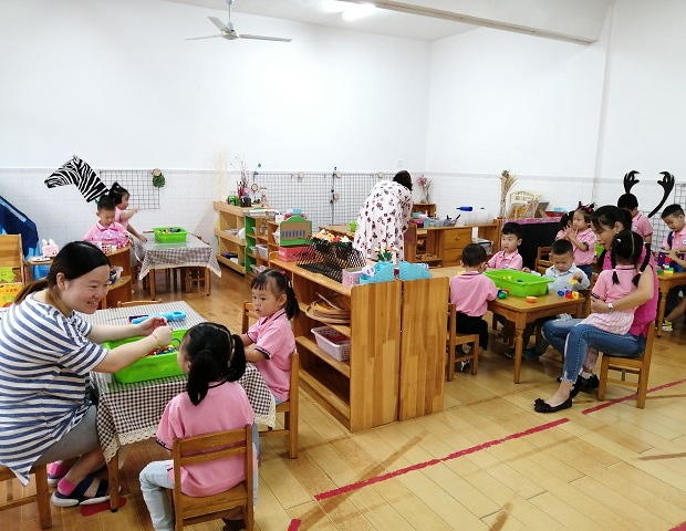 中大班的孩子们换了班级,有的开始布置自己的新教室,有的则回到自己原来的班级去看望弟弟妹妹,还有的和小伙伴们一起寻找幼儿园的变化。而小班的孩子们,经过老师前期的接触与感情培养,离开家庭的他们,大多开心地在教室里寻找新宝贝,也有哭泣的孩子在老师的怀里感受另一种爱与温暖。