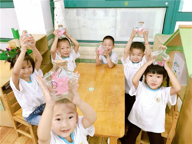 除了园区活动,各班也开展了丰富多彩的开学季班本化活动。刚入园的孩子们对大班新环境感到新奇又陌生,教师抓住这个契机,与孩子们开启了“游园会”活动,“你快看,我们的大厅好漂亮哦,这里摆了很多绘本可以给我们看呢。”“哇,我们的教室比中班更大了”,孩子们从南面楼到北面楼,从一楼爬到三楼,经过一个个班级,一个个活动室,走廊里充满了孩子们的欢声笑语,回到班级后,孩子们将自己的所见所闻绘画下来,相互分享,助力更快融入新环境。“大家好,我是可可,暑假里爸爸妈妈带我去北京旅游了,我们爬了长城,还参观了故宫呢,玩的很开心”,大七班的孩子们正在分享“暑假趣闻我来说”活动,看,他们有的拿着照片交流自己的旅途见闻;有的还带来了一些地方特产和同伴们分享呢!大五班、大十班的孩子们正在制定“我的新学期计划”,他们用画笔认真的记录着自己的计划,并将新学期计划张贴在教室的墙面上,真正做到了“我的计划我实现,我的环境我做主”。大四班、大九班、大十一班开展了“心愿便利贴”和“时间胶囊”活动,这是孩子们在幼儿园的最后一年学习生活,他们纷纷将愿望画在便利贴上,并装进一个个奇特造型的玻璃瓶里,然后充满仪式感的放置在自己的储物柜里,孩子们用“时间胶囊”的形式记录当下、同时对美好未来充满着无限期待。