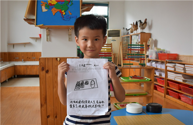 相比中班幼儿来说,大班的孩子已然是熟悉了园区环境,所以老师们对他们提出了更高的要求:带着一双发现的眼睛去寻找幼儿园的新变化。让他们沉静下来去细细观察,发现那些不经意间的小惊喜。并担任导游向自己的爸爸妈妈介绍幼儿园的各个场所以及游戏内容。
