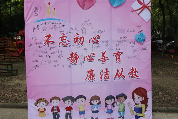 为进一步强化师德建设,提高教师们的职业道德素养,在第35个教师节来临之际,河海幼儿园开展了廉洁从教签名活动。