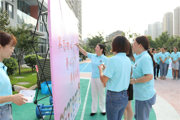 9月10日早晨,河海幼儿园党支部书记万立纯向全体教职员工发出了“不忘初心、静心善育、廉洁从教”的倡议签名活动,万立纯呼吁大家要用实际行动来展现河海幼儿园教师“能静心,善育人”的品质,真正做到身正为范。