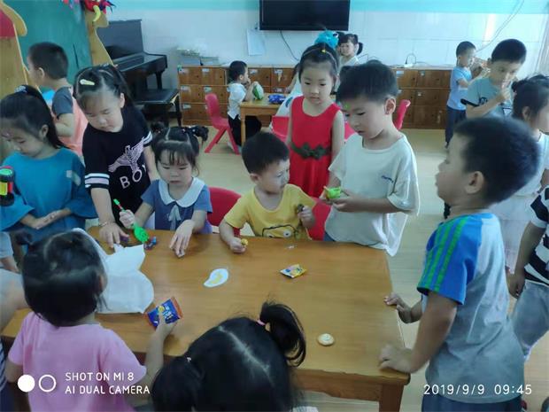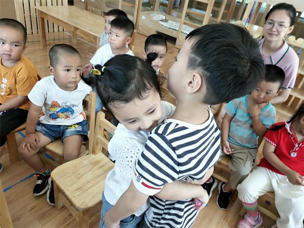 星期一的早上阳光明媚,孩子们牵着大人的手陆续进入幼儿园。已经在学校适应了一周的中班孩子们决定去看看小班的那些没有适应新环境的弟弟妹妹们,于是在9月9日这天上午,中班组开展了给小班“送温暖”的活动。