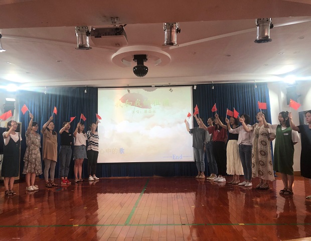 最后,我们在李亚琴、刘猛老师的带领下歌唱“我的祖国”,庆祝祖国70周年生日,歌声洪亮而饱满,手中一面面五星红旗摇曳生姿,场面蔚为壮观,彰显了我们每一个魏幼人的爱国情怀。同时,陈华芳园长、王雯主任、张蓉等老师也在此时此地共同庆祝自己的生日,祝愿自己每一天都快快乐乐。另外,陈园长还邀请了我们的老园长钱春梅老师一起和我们庆祝节日,钱园长说:“这是我在魏幼过的最后一个教师节了,过完了这个教师节我就退休了,以后的每一年教师节我都会在背后默默地祝福着魏幼的每一个人!”一席话让我们深深感动与浓浓不舍。在此,陈园长给钱老师送上了节日的鲜花,表达着对钱老师的感恩与敬重,没有钱老师奉献一生的“挖井”,哪有我们魏幼现在的发展。学会感恩,这是每一个魏幼人的自我修养。