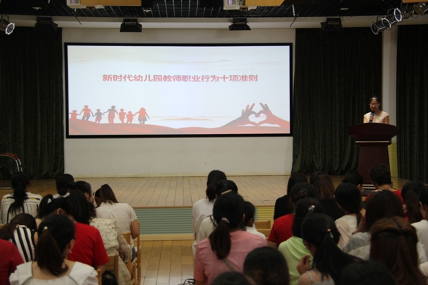 党的十八大以来,习近平总书记在关于教育工作的系列重要讲话中,把师德师风建设作为提升新时代教师素质、办好人民满意教育的首要任务,提出了一系列师德建设的标准和要求。本次活动中,葛老师代表领导班子,逐条为全体教师认真解读了《新时代幼儿园教师职业行为十项准则》,要求全体教师一定要牢记责任和使命,守住自己的师德底线。教师们在认真研读的同时,纷纷表示,在以后工作中会结合这十项准则严格要求自我,自重、自省、自警、自励、自觉做一位传播优秀文化、潜心教书育人的好老师。