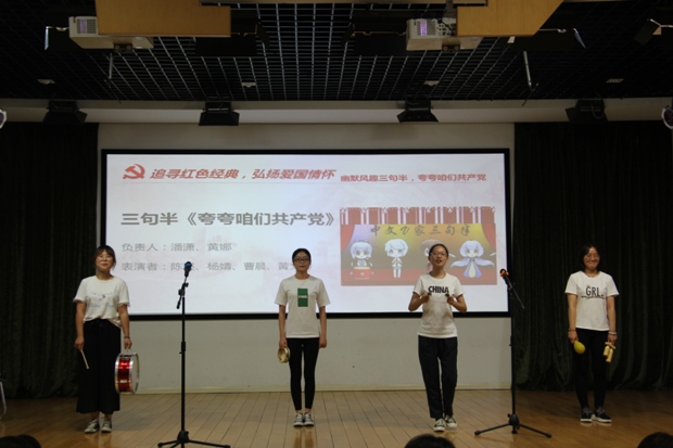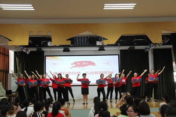 新幼教师们多才多艺,能歌善舞,恰逢新中国七十华诞,教师们和党员代表们积极发扬了“我的节日我做主”的精神,以诵读红色经典《中华颂》、《读中国》、齐唱红歌《我和我的中国》、红色小品《我的祖国》、幽默三句半《夸夸咱们共产党》等多种形式,传承了红色精神,表达了对抗战英雄的缅怀和对祖国的美好祝愿,充分展现了朝气蓬勃、积极向上的教师风采。