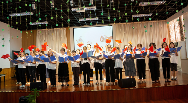 今年是中华人民共和国成立70周年,也是第35个教师节。在活动最后,全体教师高举国旗,激情澎湃地演唱歌曲《歌唱祖国》。歌声中唱出了我们对祖国的热爱之情,同时也祝祖国母亲70岁生日快乐!愿祖国永远繁荣昌盛!