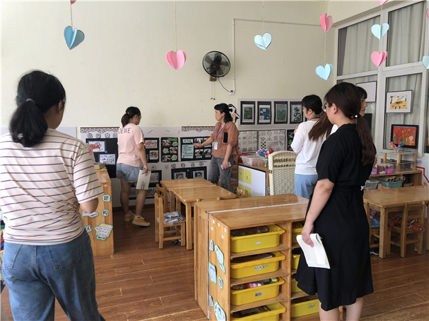 在观摩的过程中,由依次轮到的班级班主任介绍自己班级环境创设呈现的方式与想法,且观摩的老师更是能够跟着主讲老师的步伐仔细聆听、感知,她们时而抬头凝望观察,时而低头认真记录,有的甚至拿起手中的手机进行拍照记录,由此可见,老师们非常的尽责与敬业。